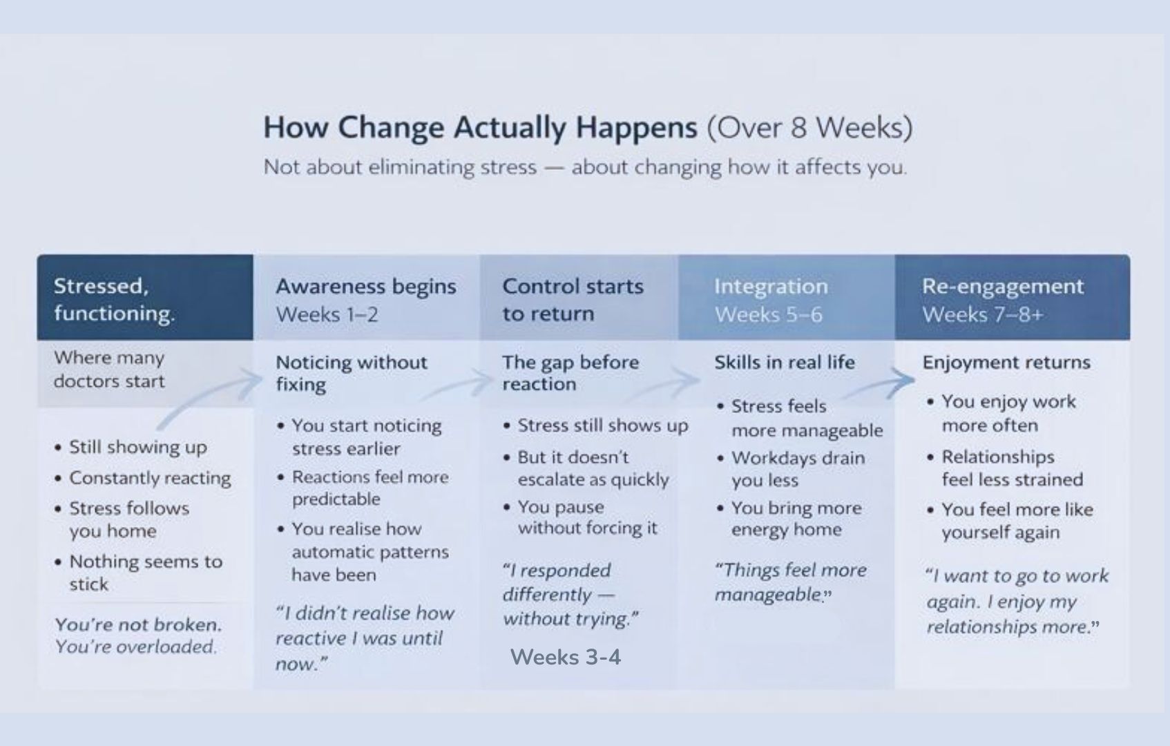 🔹 Dr. Ahmed, a GP, struggled with constant mental exhaustion. After integrating mindfulness into his routine, he now navigates high-pressure situations with greater calm and confidence.